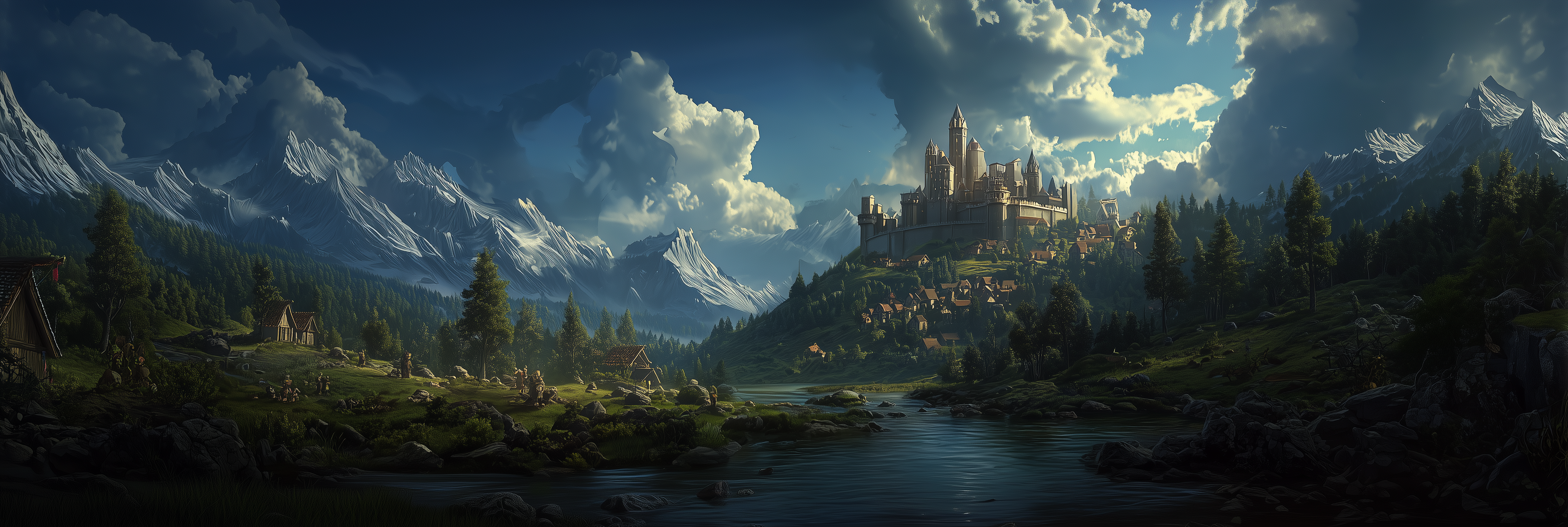 The heart of the kingdom and the seat of power of the JanCastle family. The dominant features are the grand city itself: The Mountain City of JanCastle along with the Two Worlds Lake, connecting the city to the great rivers and touching upon the Southlands of JanCastle on the southernmost tip of the lake. To the north are the Great Mountains, beyond which is the Northlands of JanCastle.