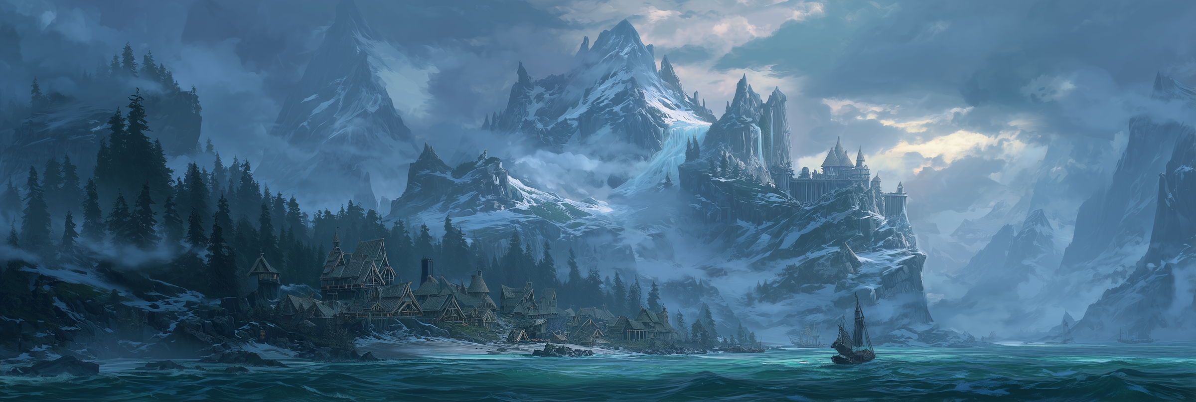 The Stormcrest Isles sit on the north east coast of Vinor and draw in the cold northern winds for most of the year. The waters between the isles and the mainland are rough and dangerous, preventing frequent travel.