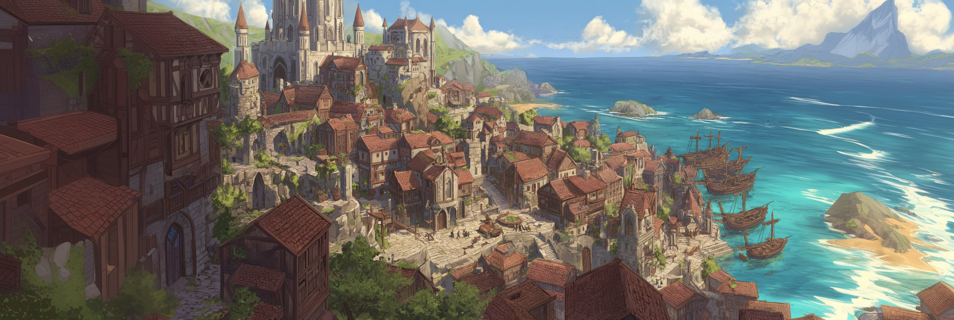 Silvereth is a prosperous coastal city on the eastern shore of Vinor, known for its extensive trade networks that connect it to northern lands and southern kingdoms, fostering a diverse population of humans, elves, and half-elves. Its cobblestone streets bustle with merchants and adventurers, while ancient halls pulse with mystical energy that draws scholars and mages to explore powerful enchantments. Rebuilt after a great calamity, the city stands as a resilient hub of renewal, where harbors welcome ships laden with goods and stories from afar.
