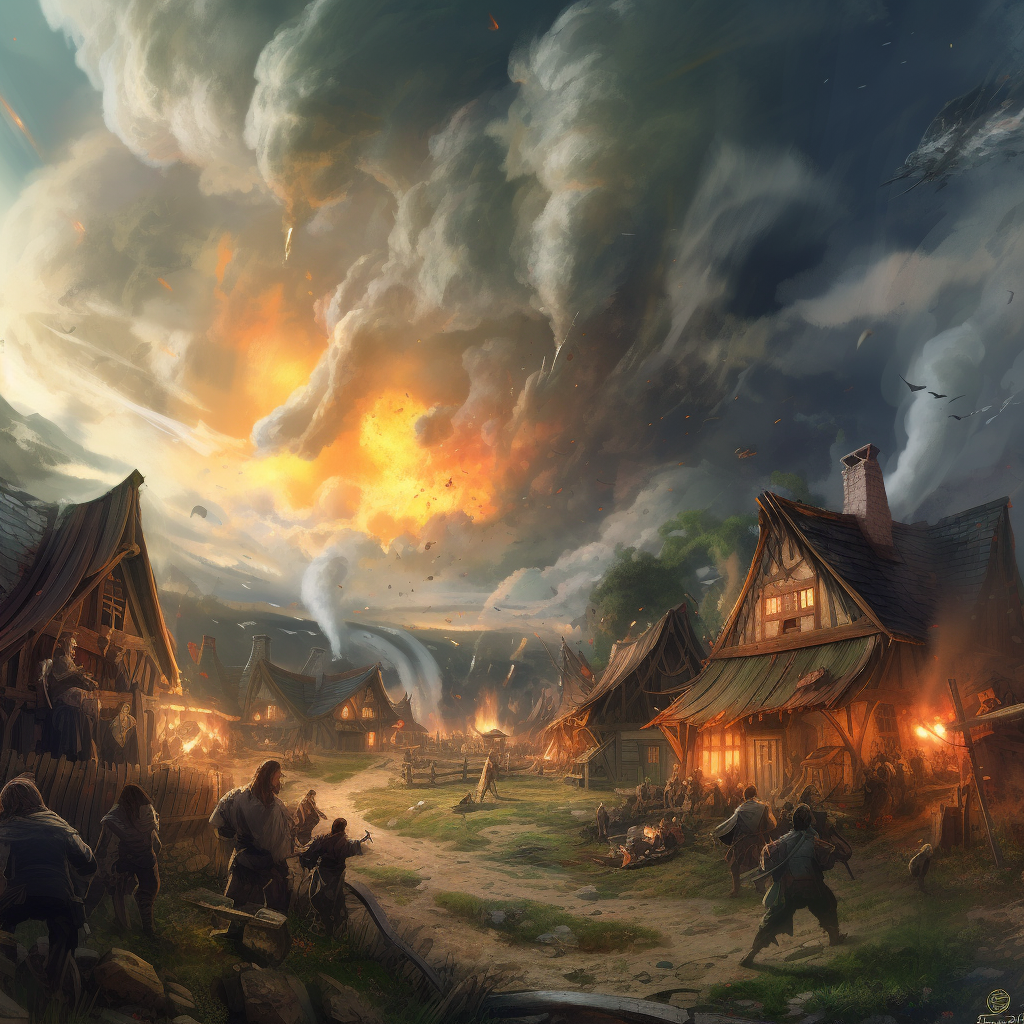 In these relentless visions, the tormented faces of four figures repeatedly emerged—Ignis the fiery human, Geira the enigmatic elf, Tempest the steadfast dwarf, and Melody the nimble halfling. Their expressions twisted in agony, as if enduring eternal suffering in some forsaken realm, their silent pleas echoing through the villagers' subconscious. The dreams left the refugees exhausted and fearful, wondering if these spectral visitations foretold a greater calamity tied to the adventurers' fates.